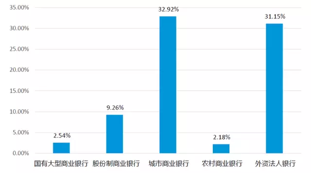 2016年,城市商業(yè)銀行和外資法人銀行凈利潤增長率優(yōu)勢顯著,平均增長率超30%,而股份制商業(yè)銀行以平均9.26%的速度保持凈利潤穩(wěn)步增長,國有大型商業(yè)銀行和農(nóng)村商業(yè)銀行則增幅相對較低。