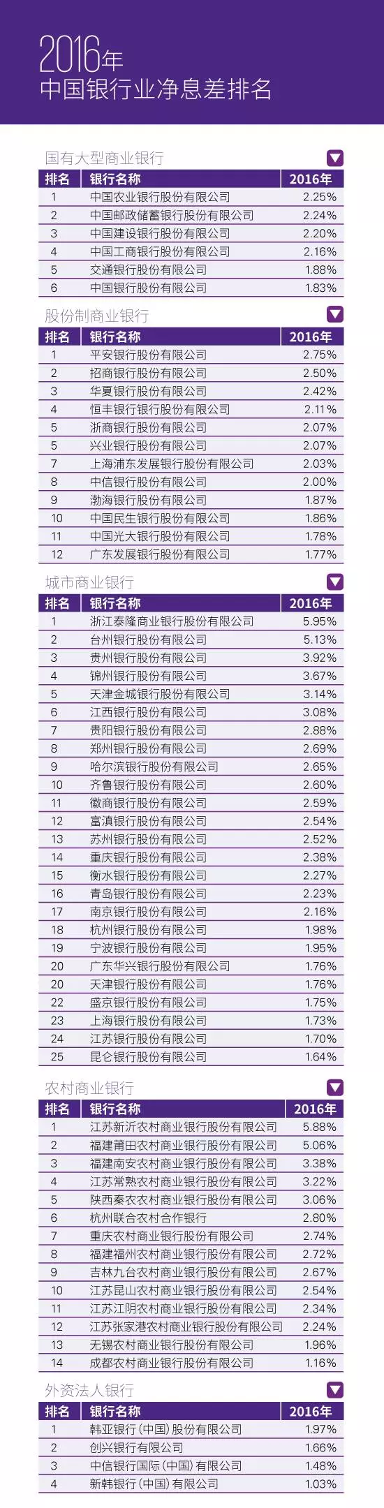 2016年各類銀行平均凈息差